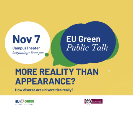 The EU GREEN Public Talk on Diversity, titled “More Reality than Appearance? How Diverse Are Universities Really?” will take place on November 7, 2024, from 6:00 pm to 8:00 pm…
