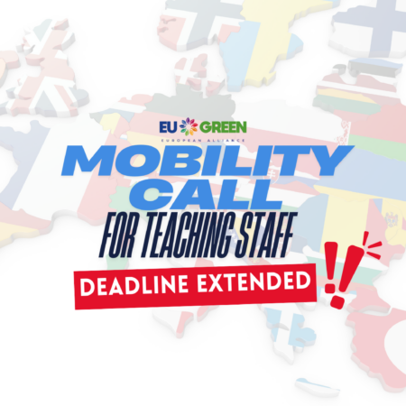 EU GREEN ERASMUS+ STA Exchange Call for the Academic Year 2024/2025 The EU GREEN Alliance is excited to announce the launch of its first Erasmus+ STA (Staff Mobility for Teaching…
